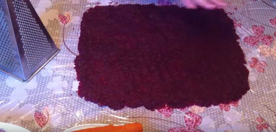 2. Теперь, так как я делаю именно рулет, то чтобы он лучше скреплялся, нужно удалить лишнюю влагу из моркови и свеклы.