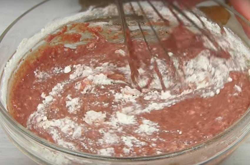 3. Вбейте яйца, посолите и поперчите по своему вкусу. Тщательно перемешайте до получения однородного теста. Отставьте массу на 15-20 минут, чтобы все ингредиенты успели гармонично соединиться.
