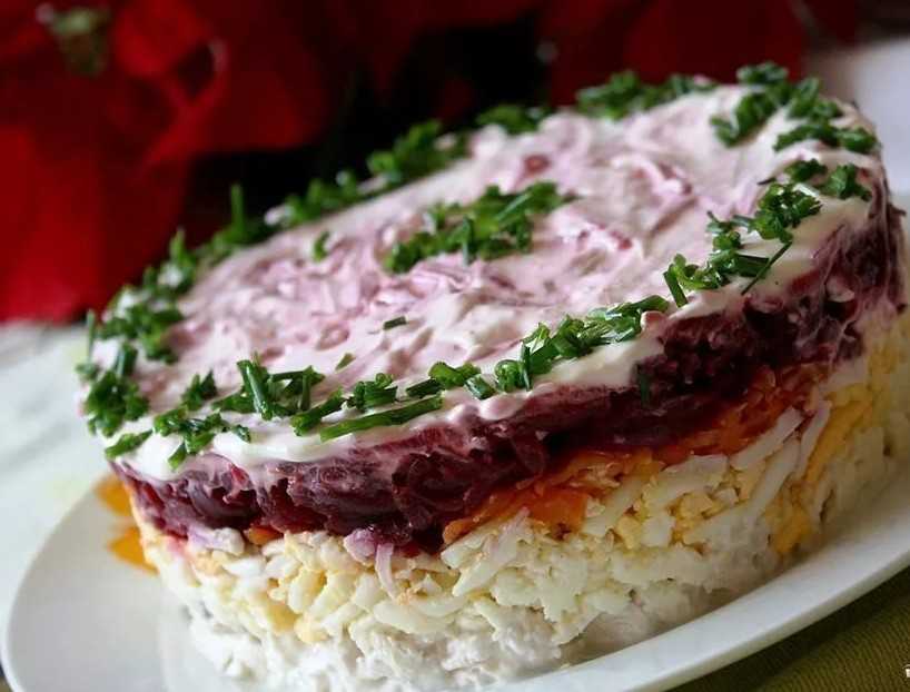 Вкусная и яркая закуска в виде салата-торта к вашему столу!