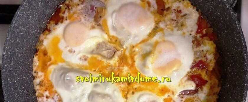 Рецепт вкусной яичницы с помидорами, луком и болгарским перцем