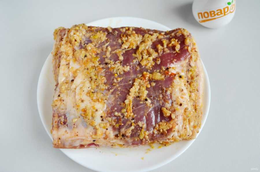 - Сложить подчеревок пополам, убрать в контейнер или в пленку. Держать в холодильнике 10-12 часов, чтобы оно пропиталось ароматами.