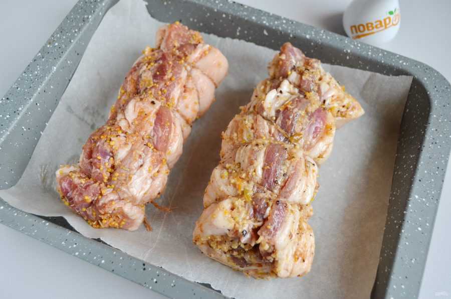 - Смазать поверхность горчицей и завернуть мясо так, чтобы пар во время запекания оставался внутри.