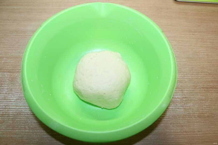 - Создать классическое пресное тесто из муки, яиц и воды и оставить доходить на полчаса.