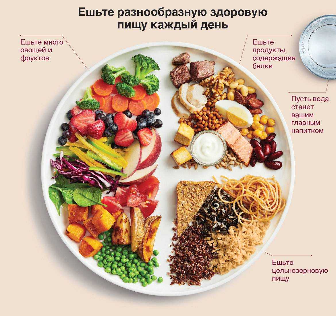 Я придерживаюсь правильного питания. Так должна выглядеть идеальная тарелка, по мнению канадских врачей. Половина приходится на овощи и фрукты, четверть — на цельнозерновые продукты, а другая — на источники белка